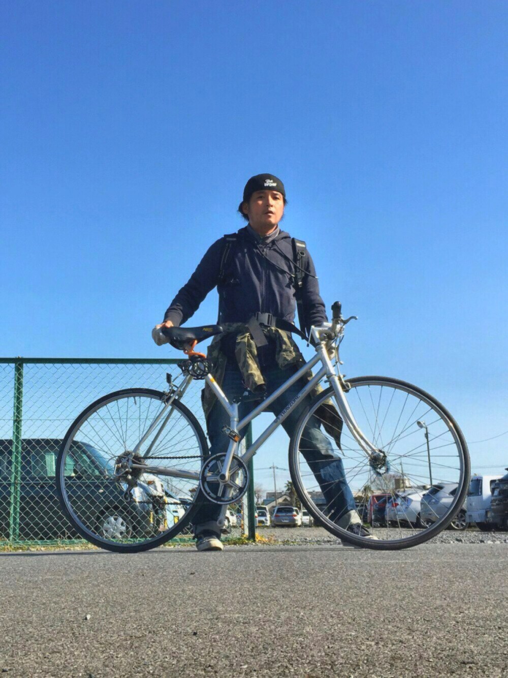 ネイビーパーカー + チャリコーデ ★ 寒さ対策でアウターを腰巻に💡 イイね、セーブ、コメントありがとうございます♩