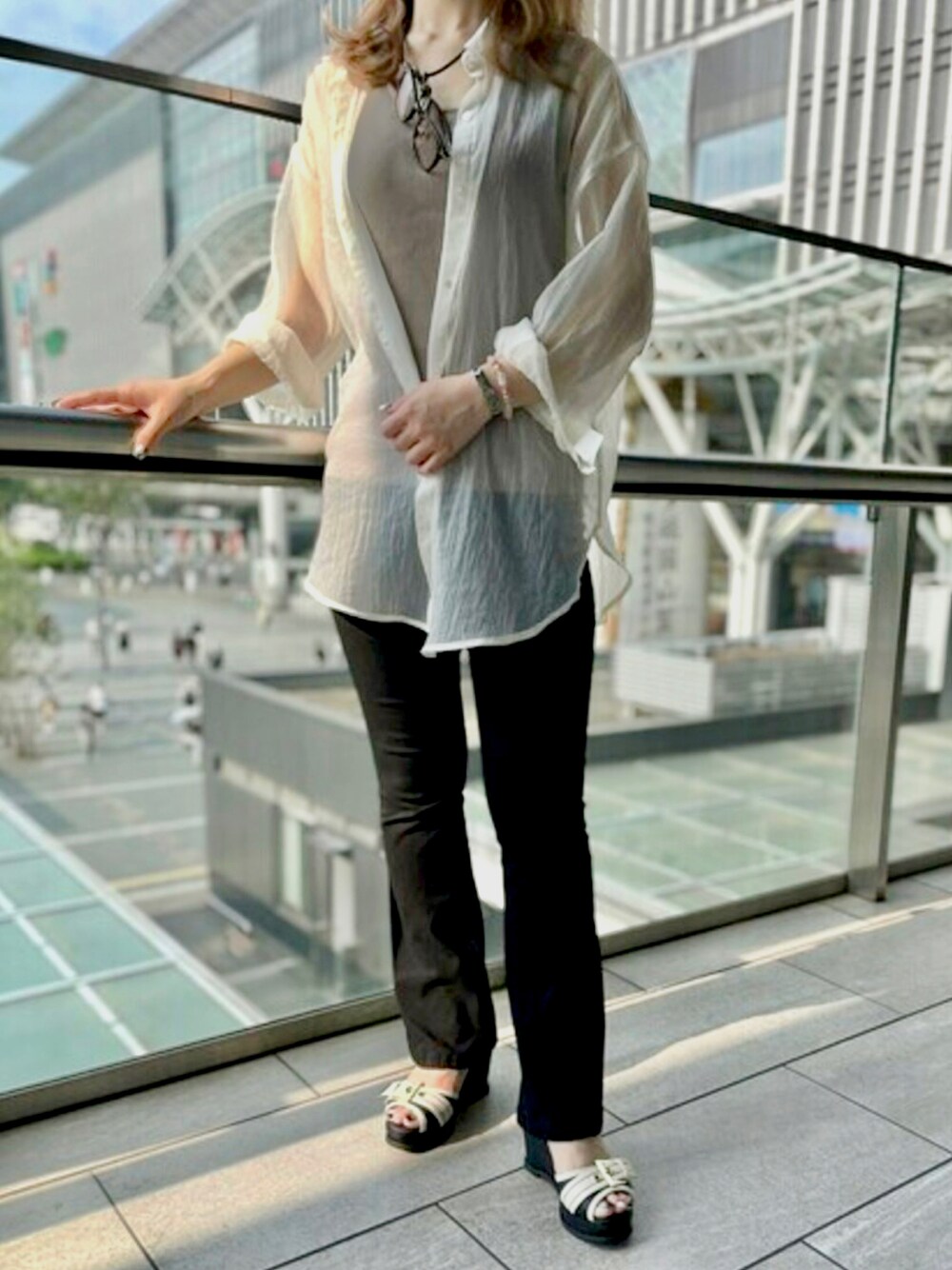 Shoe Fantasyのサンダル「バックルデザイン ストラップウエッジサンダル」を使ったコーディネート