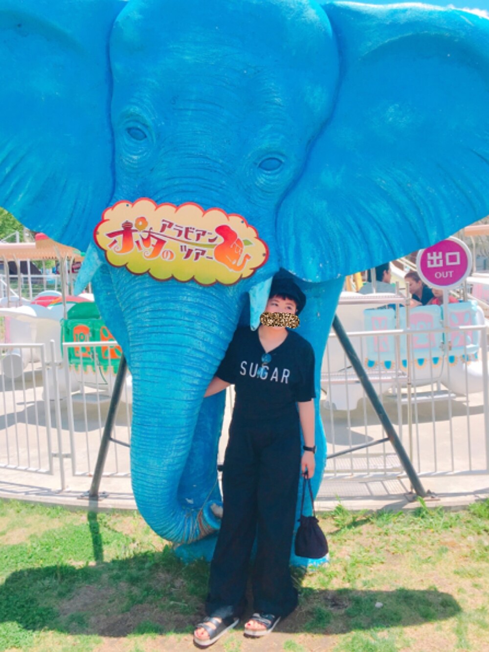 ブラックコーデ✌︎ 後ろで交差させて止めるタイプのズボンでかわいいです☺︎ 巾着にビーズがついててかわいいのですが見えなかったですね😂