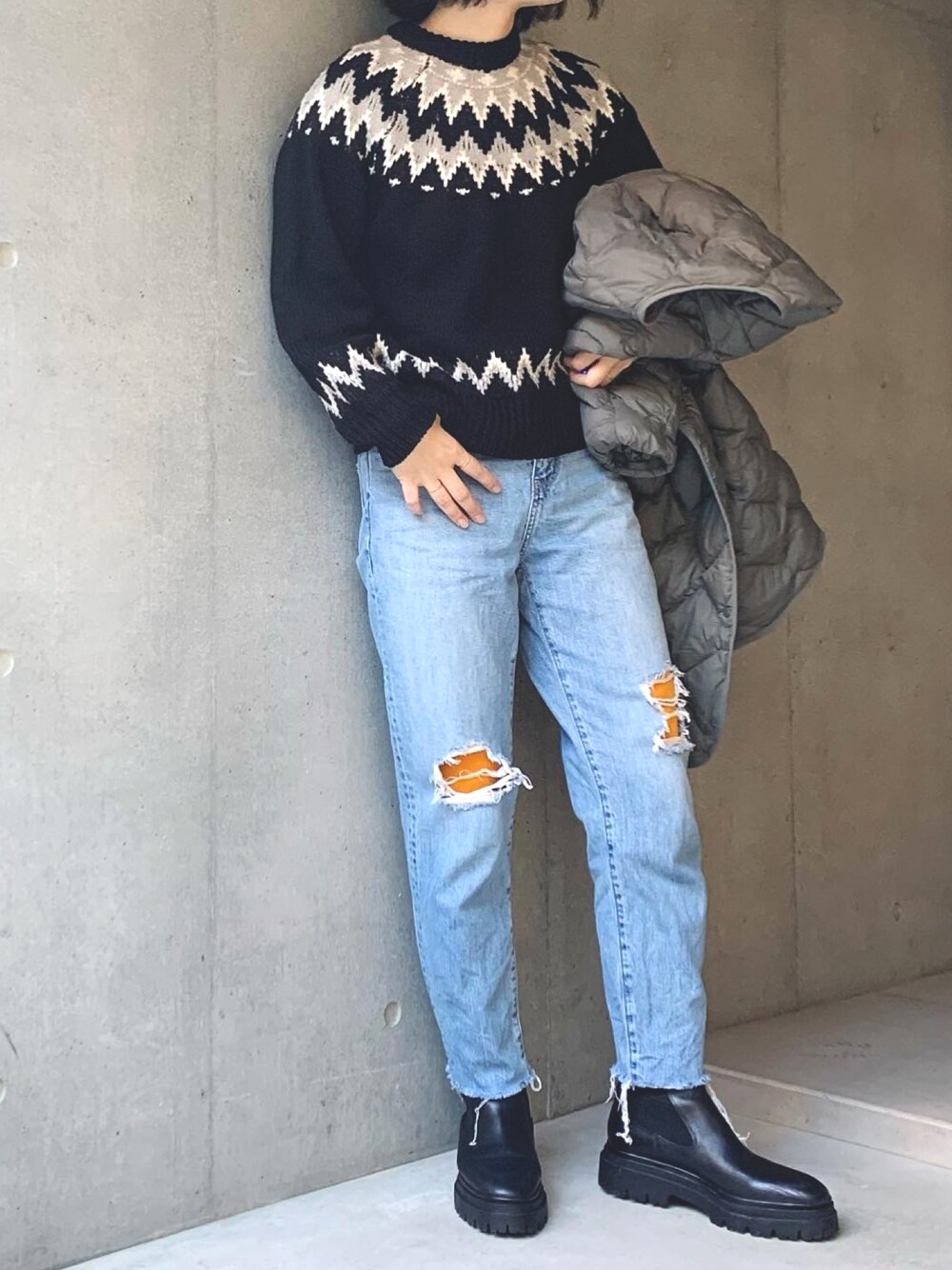 こんばんは。 今日は冬気分が盛り上がる、ノルディックニットで! 早くもっと寒くなってほしいです⛄️
