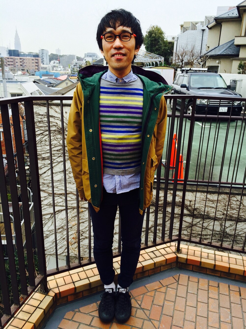 今朝はみぞれでした… その中で撮ってくださいまして、ありがとう、 →私の奥さんでございます また、このボーダーニットも奥さんからいただきました。パステルカラーがお気に入り。 今日の全体のカラーバランスが何とも言えないが、好きです… ✴︎コーディネート 白ソックス: ニット:john smedley パンツ:PICCADILLY マウンテンパーカ:STUDIO ORIBE