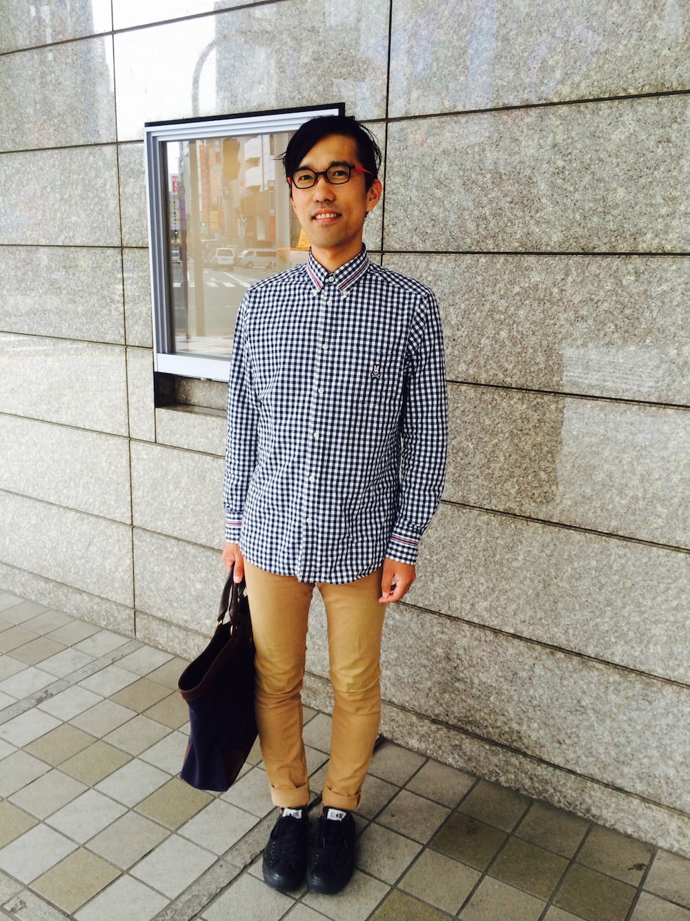 清々しい朝、心地よい気候です! 大好きなソフトロックがループします… シャツ:Psycho Bunny パンツ:PICCADILLY 靴:CONVERSE バッグ:Whitehouse Cox めがね:ANNE ET VALENTINE