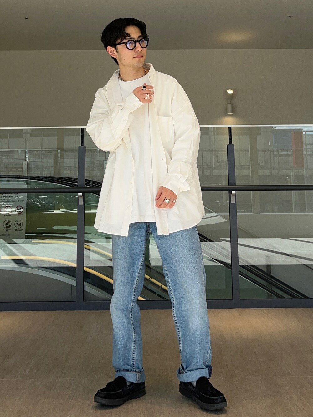 今日のスタイリングのポイント🦆 今日のスタイリングは、サイズのバランスを意識した定番スタイリングって感じです🤔 サイズ感は全体的にゆったりとさせてます。こう言ったスタイリングだと、インナーを割とジャストにしがちですが、若干の子供っぽさを感じるので、インナーもゆったりシルエットで🙌🏻 ボトムもトレンドはまだまだガッツリ太めが人気ですが、これまた印象が若く見えたり、個人的に脚が短く見えてしまうので、ストレートよりも少し太いくらいでスタイリングしてます。 ストレートのいいところはトップスのサイズ感をゆったりさせておけば脚が長く見えるので基本脚短い僕はストレートチョイスが多いです🙋🏻♂️