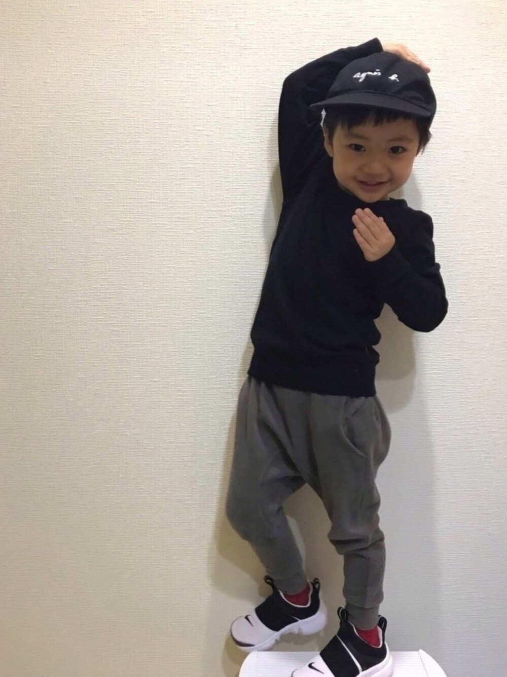 ポーズ?!?!?笑 いつかのシンプルコーデ♡ トップスはおばあちゃん🎁💕 北国発セレクトショップのオリジナルブランド♬ お値段🙆♀️素材🙆♀️スッキリシルエット🙆♀️💕 日本製にこだわって作ってるみたい😋 おばあちゃんがよくここのお店でお洋服買ってくれます😁❤️🙏 ちらりと脇に赤いピスネームがついているので(全く見えてないけど😂)ソックスも赤に😚❤️ quotiの大好きサルエルパンツは😙 この色絶対サイズアップ欲しーーーい♬