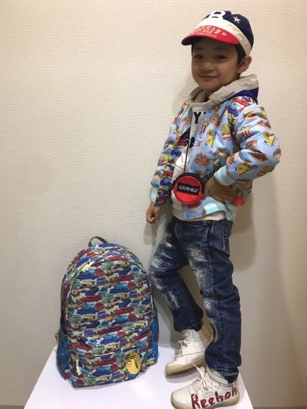 子供らしいド派手なフェフェの中綿ブルゾン🍔🍟🍿で😁アウター着回しチャレンジに参加💙❤️💚💛 3回参加出来ず😂失敗に終わる可能性も十分にあるのだけれど…👍笑✨ このアウター♪実はリバーシブル♬ 両面が派手派手なやつ😆🍔🍟🍿🚙🚗💕 1コーデ目はパーカー合わせでカジュアルに💛💙❤️ 裏面&切替になっている車柄🚘と同柄のリュックも愛用してます🤩♪♬ WEARのコーデ見返したら、わりと落ち着いた色味が多い⁈かもだけど、普段保育園にはカラフルな色のお洋服も沢山着ていってたりします😁 まだまだ色々着せたくてさまよっております★彡
