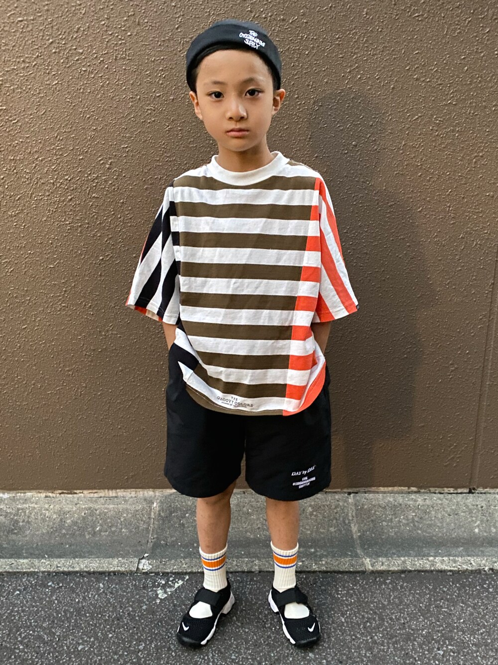 新しい帽子をget🖤 こういうタイプ初めてだったので👀ちょっと✨新鮮✨ 形もカラーも可愛いTシャツはインパクトがあるので🖤💚🧡他はブラックでシンプルにあわせました🖤 ソックスは👦🏻が自分で選んでいました🧦 ✒︎SHOKI 6y11m H 125cm W 20.5kg 👣R 17.8cm/L 17.8cm
