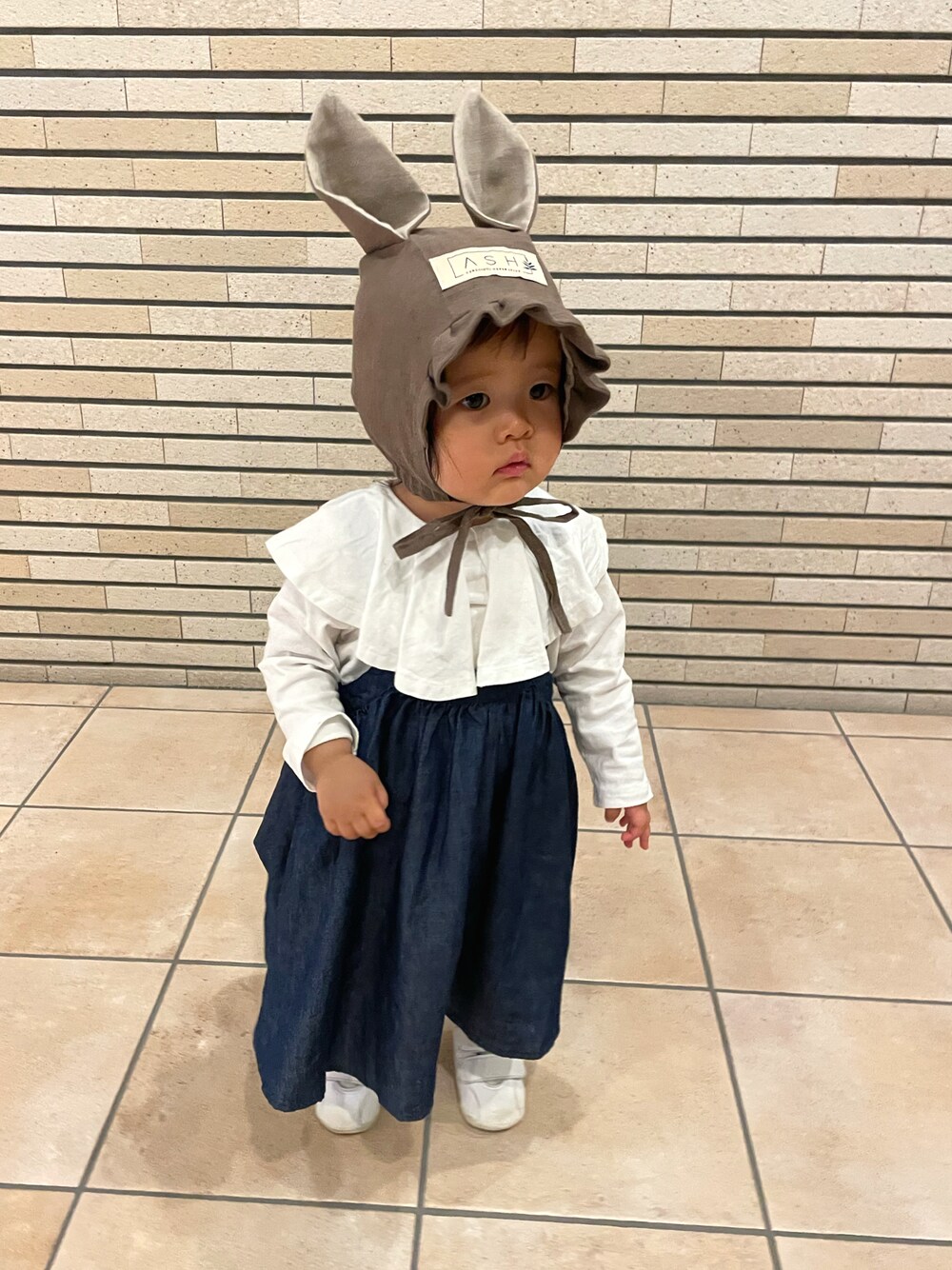 #ビッグカラー FITHの トップス × ワンピース あわせ 間違いない可愛いさ♡♡♡ 2枚目でちらりと見えているケーブル編みのレギンスはUNIQLOです🙂 ✒︎HIRARA 1y7m H 78.9cm W 10.435g 👣R 11.6cm/L 11.7cm Head 48.5cm