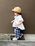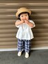 ちょっと大人っぽいコーデに子供らしい帽子をあわせました🐻🤍💙 バースデイmirror bae. のチェックプリーツパンツは👧🏻の最近のお気に入り❤️ quotie use fithのトップスは今年も可愛く着れました😚❤️ ダイソーの耳付き麦わら帽子👒&サンダルをあわせて涼しげに🌻🌻🌻 ✒︎HIRARA 2y2m H 85.5cm W 12kg