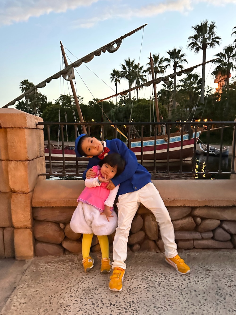 💙ドナルドダック💛🤍🩷デイジーダック💜 👦🏻▷ドナルドカラーのカーディガン×白シャツ×白パンツ💙❤️🤍黄色のスニーカーも新調💛 ちょっと大人っぽい!?ドナルドコーデにしてみました💙❤️🤍💛 全部新しいアイテムでした🙂が、我が家のドナルド、、、朝1でマーメイドラーグーンにて謎のずぶ濡れ事件🧜♀️💦 寒いー🥶💦となり、もし暑かったら☀️と持ち歩いていた白Tシャツに着替え🤣長らくオールホワイトな人になっていました✋🙄🤍🤍 カーディガン&シャツ&肌着はベビーカーの上で乾くまで干すはめに😮💨笑 男子って👊なんでこうなんでしょうかね🥺!!! 白パンツにはカーディガンの青がまさかの色落ち🟦!!! 帰ってきてから洗っても落ちませんでした🫨💦 白パンツすぐに汚すだろうな〜とは思っていたけれど!!!ものの数時間で青に染めてくれるとは思っていませんでした😂プチプラパンツでよかった😮💨🌀 👧🏻▷ディズニーで買ったディジーTシャツに袖ふりふりのロンTをレイヤード🩷💜🤍 おしりが可愛いすぎるパンツは、これまた兄のドナルドコスチュームのおさがりでした😊🤍 身長が90cmを超えたので👏ミニジェットコースターデビューをしたんだけど🎢1番最初に乗ってしまい、、、それ以降、『あぶないから‼️』と、アトラクション拒否になってしまいました🤣💦 👦🏻8y 💙❤️🤍💛 133cm / 26.4kg 👧🏻2y7m 🩷💜🤍💛 92cm / 14kg