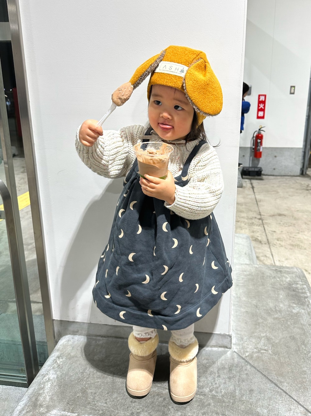 #マイベストコーデ2023 2023年最後は食いしん坊な妹で〆させて頂きます🥄😋💗 お取り寄せしてもらっていた商品を引取りに…初めて年末のコストコへ 🚗〜*:・ めちゃくーちゃ混んでいて 🛒 進めない…🛒🛒🛒 こんな混み合っている時に行くもんじゃないねぇ🫤💦とソフトクリーム🍦を買って早々に帰ってきました🙃 そんな日のコーデでした🌙🌙🌙 ▷OATのチャンキーニット × organic zooのワンピース 🍦で満面の笑みでした 😋 💗 今年も残すところ僅かになりましたが、この1年仲良くしてくれたお友達💕コーデを見てくれた方々💕ありがとうございました🙇♀️💕 来年もマイペースに続けられたらと思っています😊 どうぞよろしくお願い致します💗 🍦2y8m 😋💕 92cm / 14.5kg