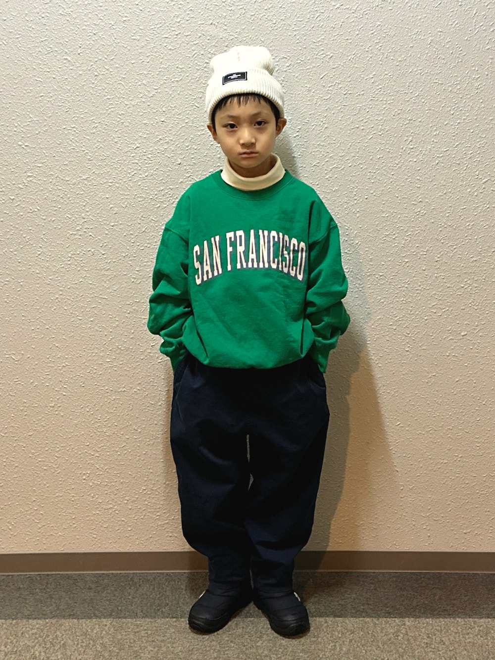 スウェット × タートル 💚🤍 GRAMICCIのパンツは今年のネイビーも買ってました💙 やっぱり形が可愛い🤤🫶 アウターありは4枚目に▷▷▷ 1ヶ月前のコーデでした🙃🤍💚💙 🤍8y2m 🤍💚💙 133cm / 26.4kg