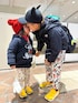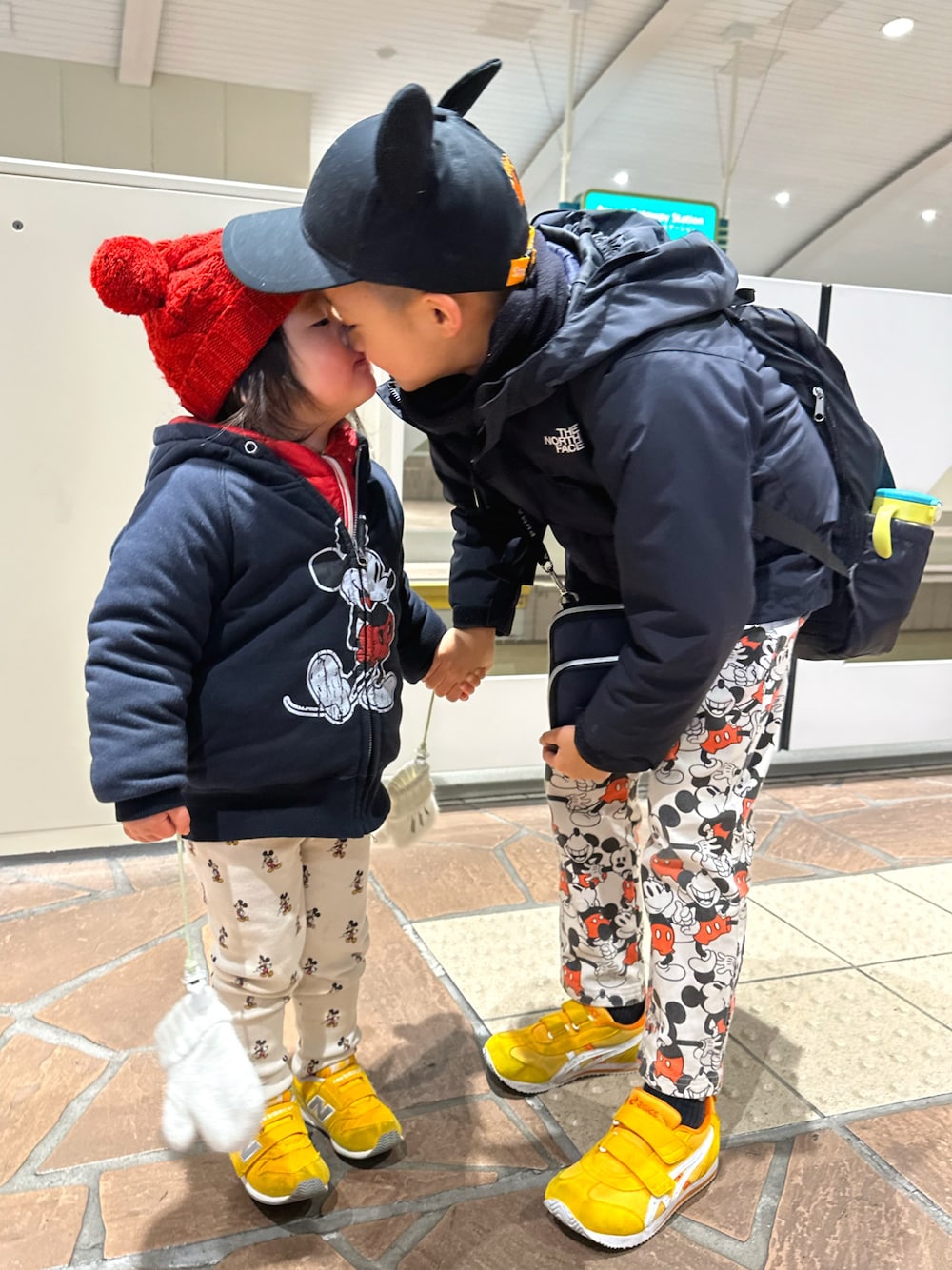 兄 ✈︎ 旅の初日コーデ 🖤🤍❤️💛 前コーデの妹とふんわりリンク☻☻ 同じアイテムはないけど、ミッキー柄のボトムス&色味を合わせていました🖤🤍❤💛 背負っているリュックは母のなんだけど😂毎日のランドセル登校の賜物でか?!力もついて 💪✨ 重いリュックも自ら背負ってくれたり、スーツケースを持ってくれたりするようになりました😁ありがたや🫶 ミッキー❤️ミニーのように鼻鼻❤️❤️ 👦🏻8y2m 🖤 133cm / 26.4kg 👧🏻2y9m ❤️ 92.3cm / 15kg