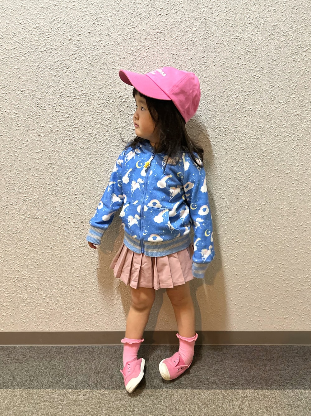 👧🏻が選んだピンクな登園コーデ🩷🩷🩷 このプリーツスカパン🩷タイツをあわせたら秋冬も使えそう😊🫶 🩷3y6m 🦄💙 99.2cm / 16kg