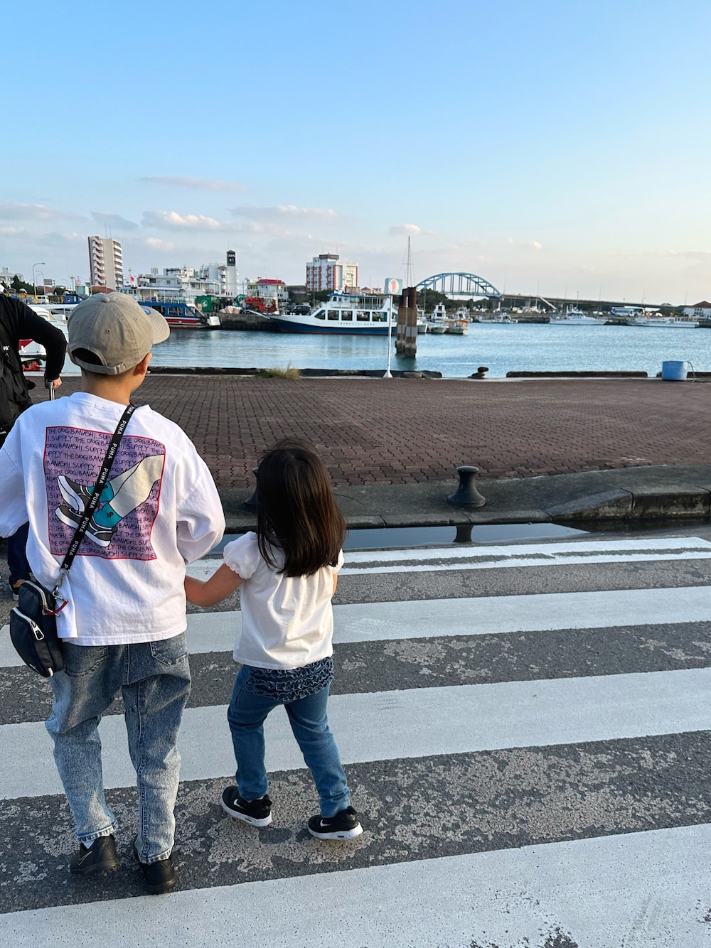 石垣島に到着し薄着になった👦🏻👧🏻 NEW ERA🧢×白トップス×デニム×黒スニーカーでなんとなくリンクしていました🤍💙 次の日は朝から西表島に移動予定だったため⛴️離島ターミナル周辺のホテルに宿泊したのでした🚤🛥️🛳️🚤 沖縄らしい美味しい食事を食べれて😋満足な1日🫶でしたが…夜に👧🏻が過去最大の📢📢📢夜泣きをした…という思い出もできたのでした😪💦 どうやら部屋が暑すぎたようで大泣き✋🙄!!! 一か八かで外に抱いて連れ出たら、室内よりかなり涼しくて🌬️速攻で😴💤眠りについたのでした…。