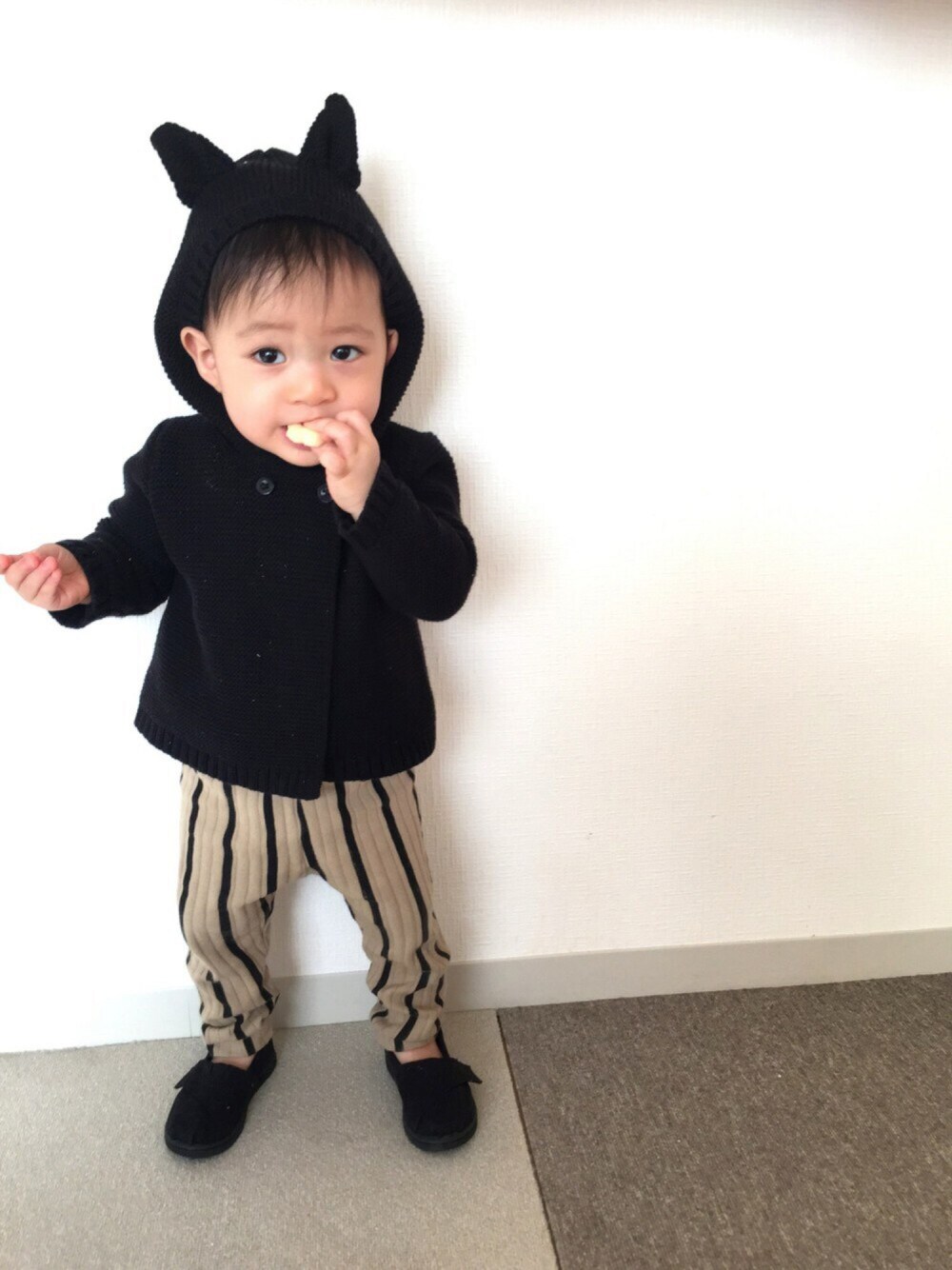 週末の方がなかなか時間がなく😫こんな時間になってしまったー💦 GAPのネコミミが可愛い💗ニットパーカーはハロウィンの時期に女の子のとこにあったのを一目惚れで購入😍そしてこないだふらりとGAP見てたら、、、ものっっっすごい安く売られてた😵‼︎笑