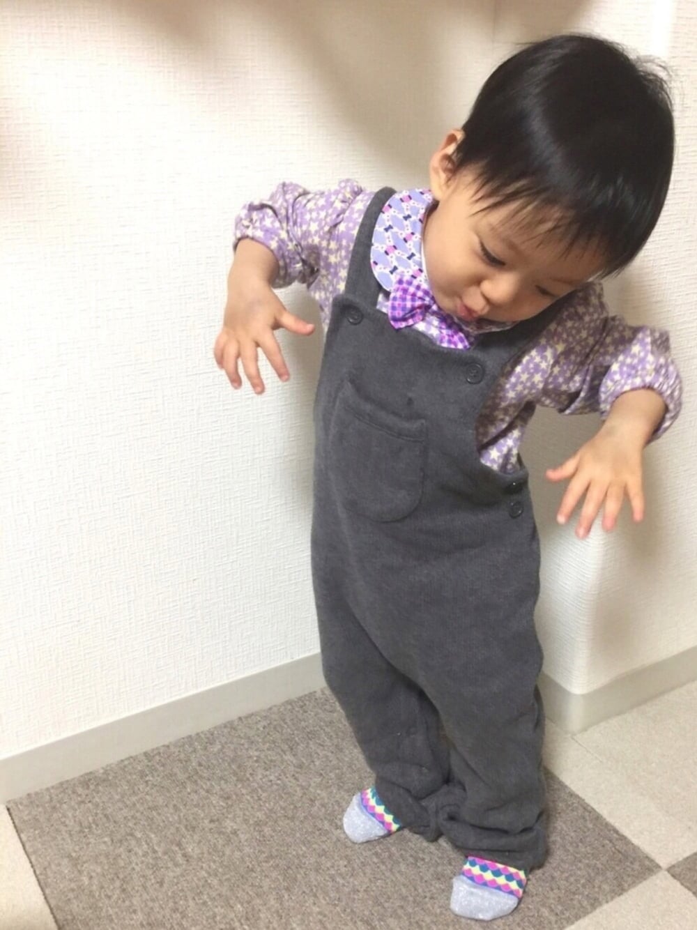 私が風邪をひきました🤧ギリギリなところでこらえているけど、鼻水すごいしうつさないよにマスクしてるしで😷オムツの臭いに気付けず💦かいでもかいでも解らず苦労してます🤣 そんなこんなでいつだかのニットサロペコーデ☆★☆ 後ろ姿も可愛い😍💕そして前髪まだ長い〜😁笑 踊っているところだったので🕺面白いポージングが撮れました😂 そして👀似合っているとは言い難いけど😜フェフェ男子でございます🎀✨