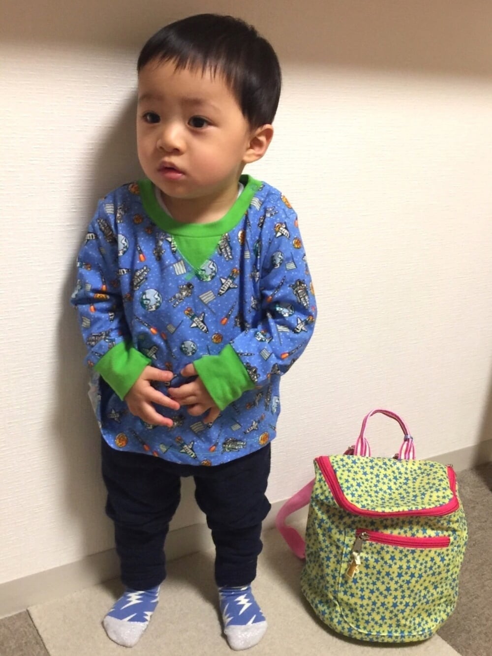 ちょっとお久しぶりになってしまいました☺︎ fafa男子コーデです☆★☆ トップスまだ少〜し大きくて、袖丈も長くて手首に縫い目当たるの嫌がられたので🤣もう少し寝かせとこうかな🌀結構手首敏感です😂