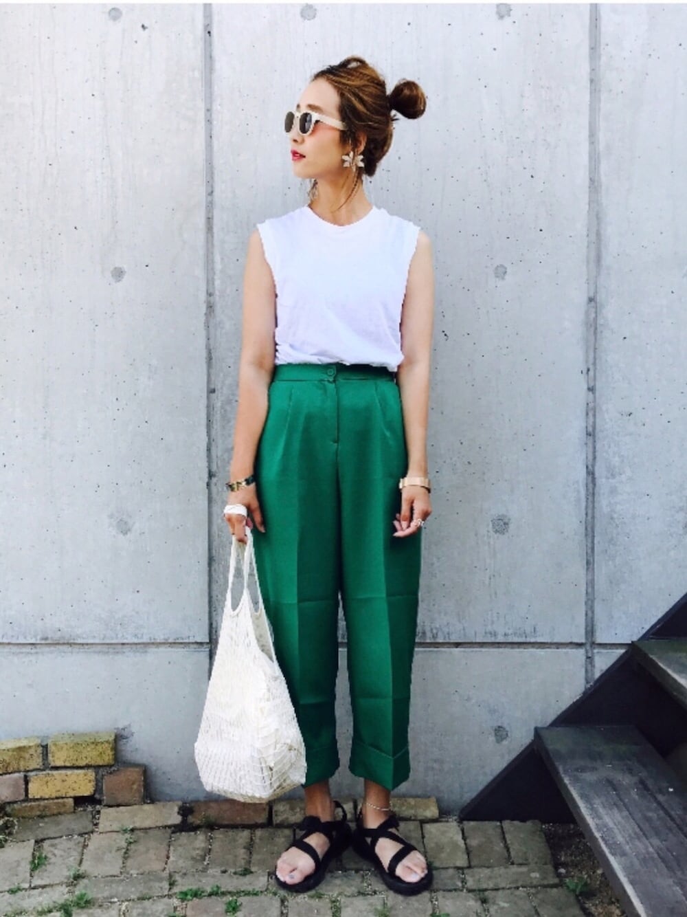 今日のフクはグリーンのパンツをメインに バックが可愛いタンクトップで☺️ 最近ゲットしたハンドメイドのピアスが凄く可愛いくてお気に入りです💓 ちなみに流行りのメッシュbagはwegoで 800円程でget😂❤️ 可愛いしやすい〜〜オススメです❤️ いつもイイねセーブフォローありがとうございます❤️❤️❤️ 嬉しいです〜☺️💋 Instagram @syoko.riiin