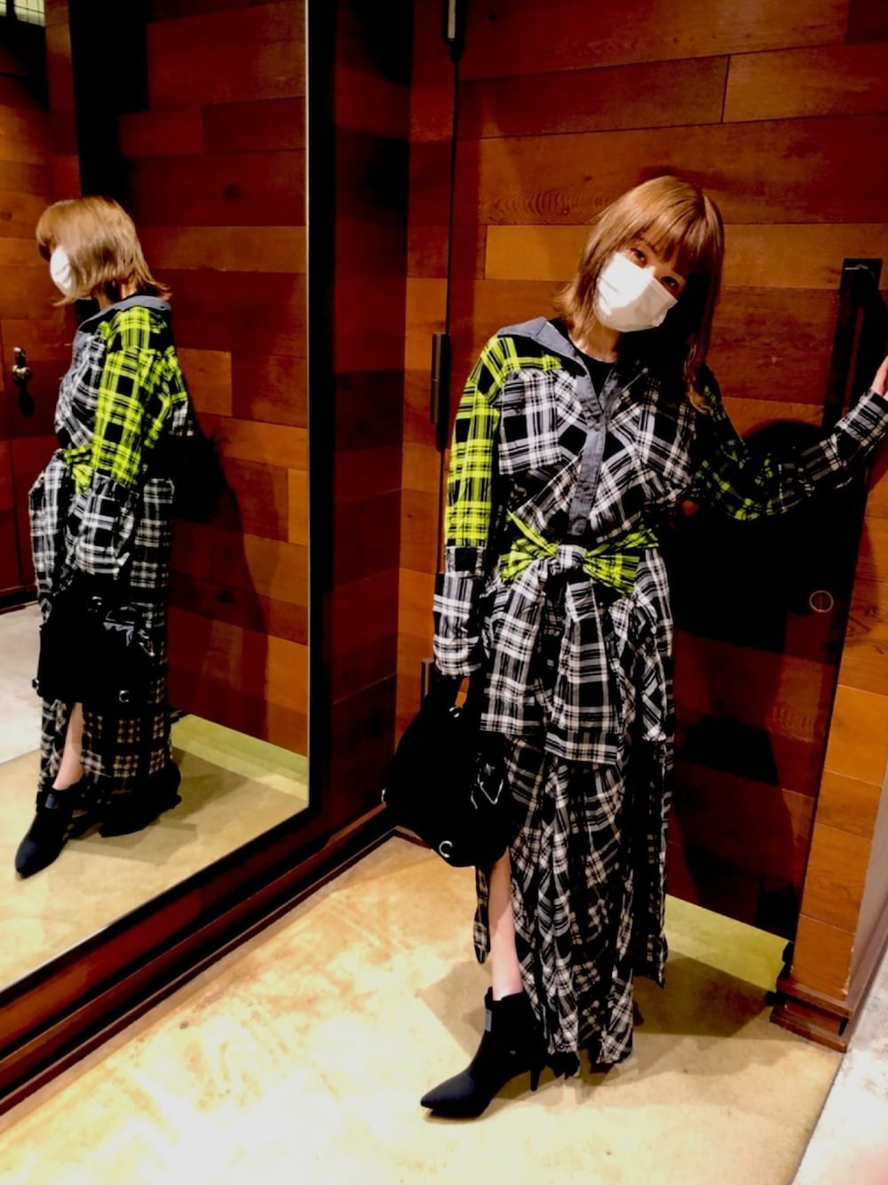 秋ファッション💙❤️🖤 チェック💋💋💋 何通りの着こなしが出来るかわいいチェックワンピース