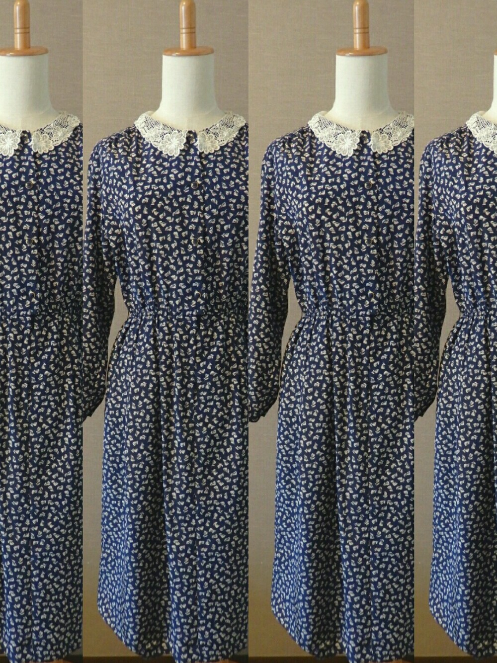花柄ワンピース 襟がレースになっています。