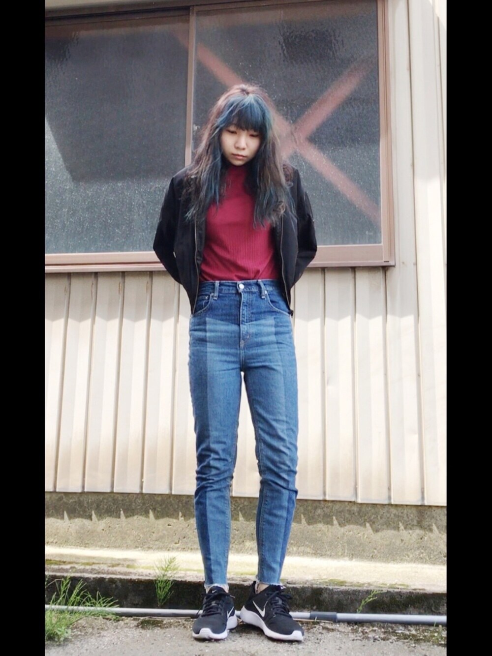 若返り作戦… 前髪あると若返るなー 台形スカートに手を出してしまいそうになる。 この髪型のうちにありかもなと思ってしまう。 というか、夏の撮影のため、前髪伸ばしてたのにもう切っちゃう飽き性… それまでに伸びるよね… 最近のマイブーム、スキニーも春だからであって、夏は暑いだろうしスキニーみたいなパツパツはあんまり履きたくない。 人の目知ったこっちゃないと思うようにして、台形スカート買おうかなー ワイドパンツが一番脚長効果なんだろうなーーー 今日のコーデは赤と青と黒。 はっきりした色の組み合わせで赤×青ってかわいいよね〜 意外と寒いから羽織るのとスニーカーは黒にした。