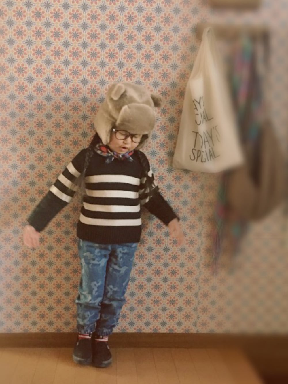 kateのニットキャップ/ビーニー「【カオリノモリ】ミタール・くま」を使ったコーディネート