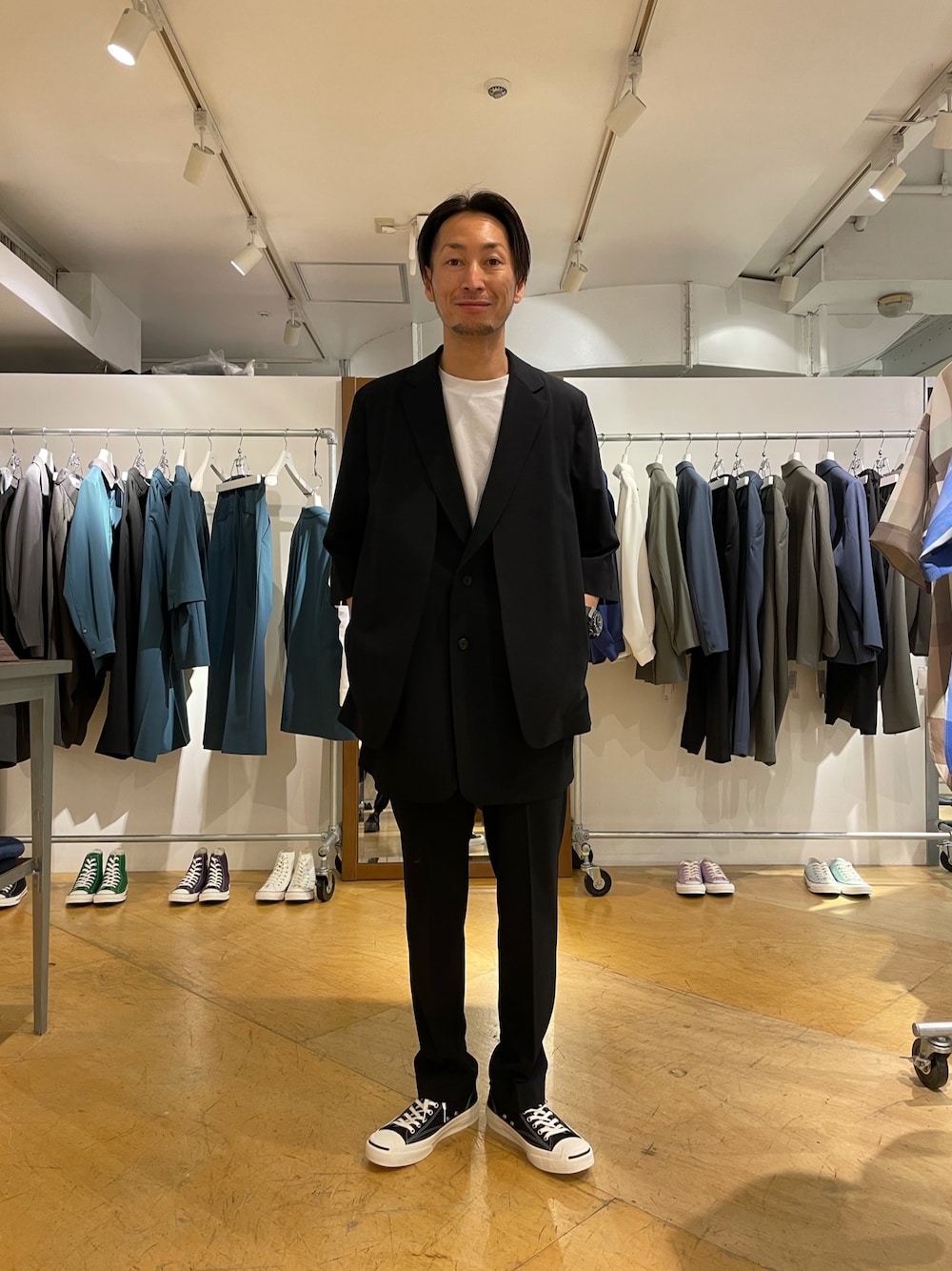 Shunsuke Itoのノーカラージャケット「【2×2 セットアップシリーズ 21Summer】 5分袖ノーカラージャケット」を使ったコーディネート