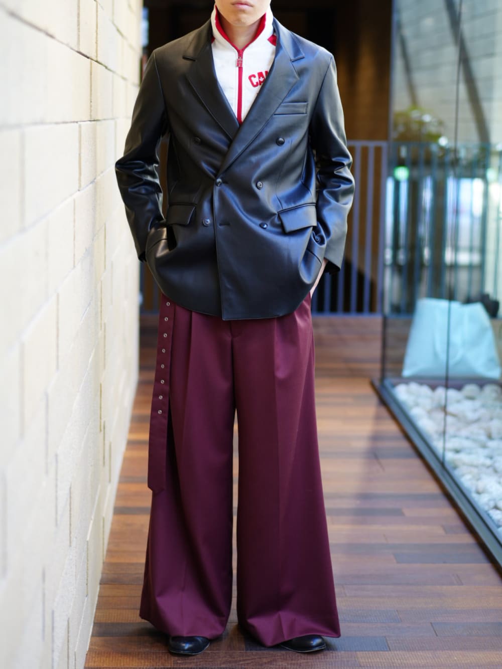 しょうくんのテーラードジャケット「<monkey time> FAUX LTHR W/B 6B/ジャケット」を使ったコーディネート