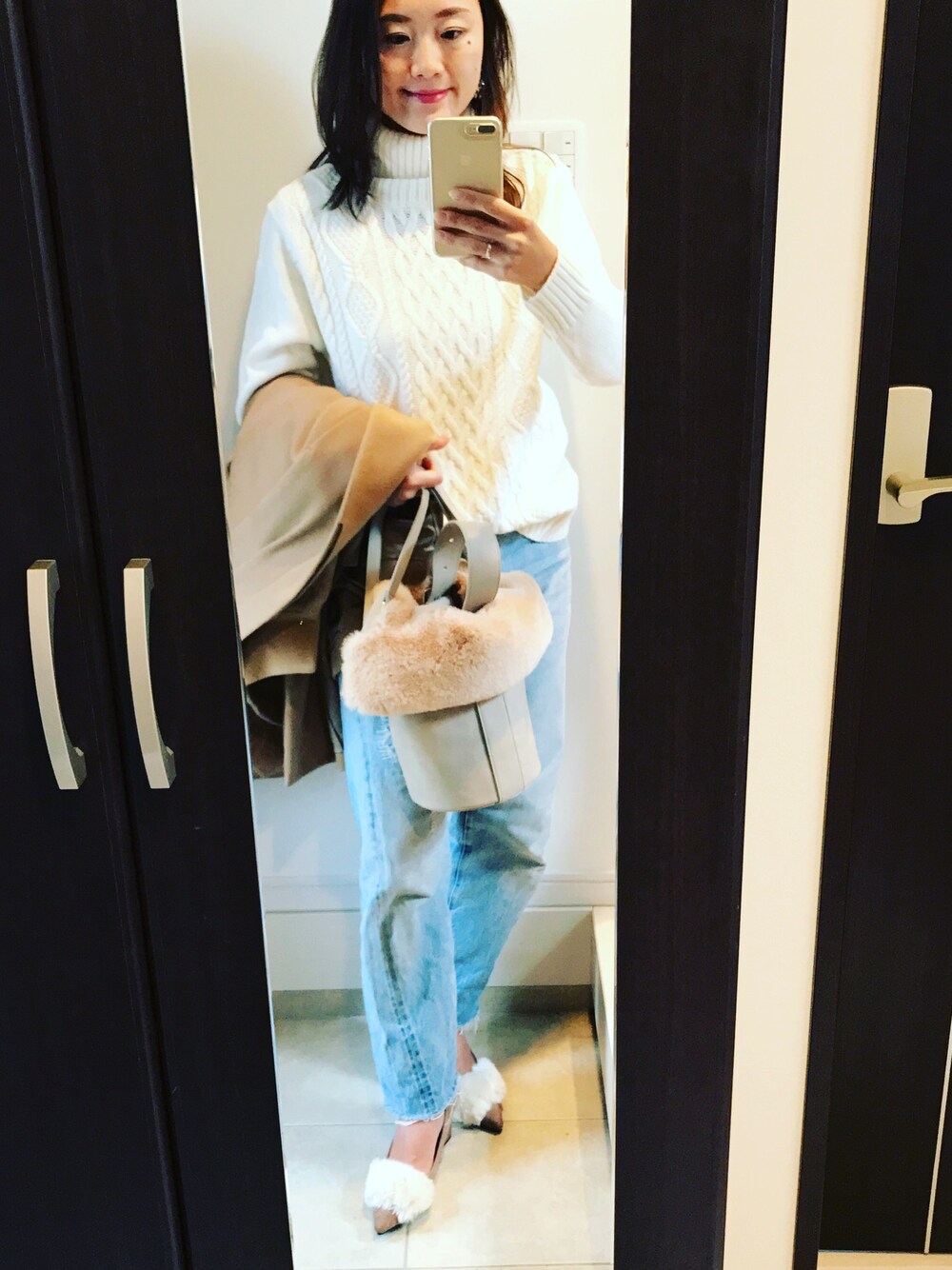 GU購入品でコーデ(*^_^*) タートルはメンズM カゴバッグのファーをGUのバッグにつけたらぴったりでした(*^_^*)