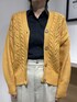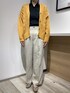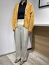 明るいイエローが差し色にピッタリのカーディガンに、シンプルなシャツとパンツを合わせて大人カジュアルスタイル。