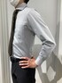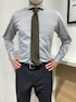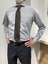 ダークグレーのシャツにカーキのネクタイを合わせました。