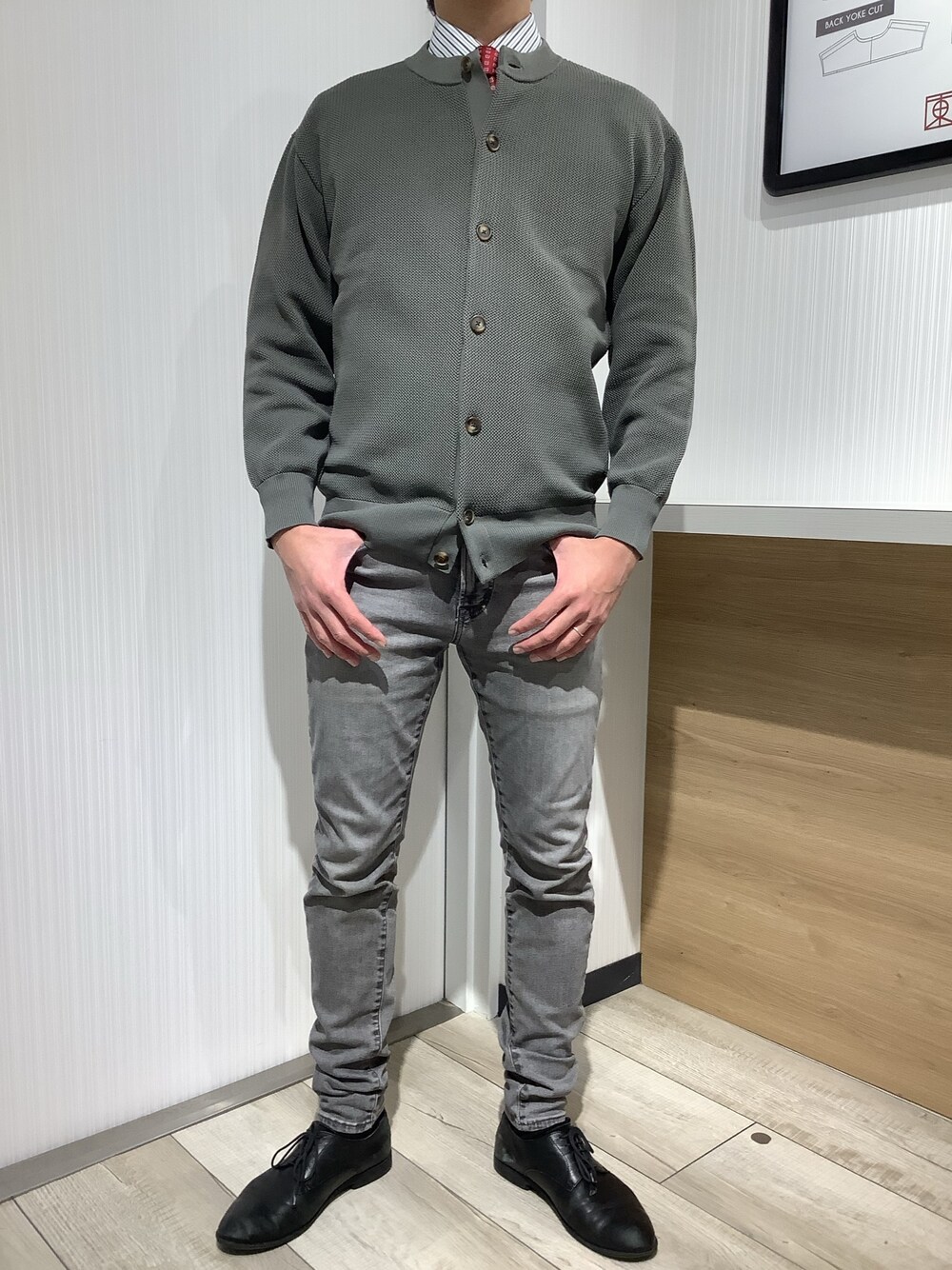 カーディガンを合わせてカジュアル感を演出しました。