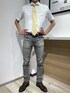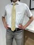 レモンイエローのネクタイを合わせて、かわいい印象にしました。