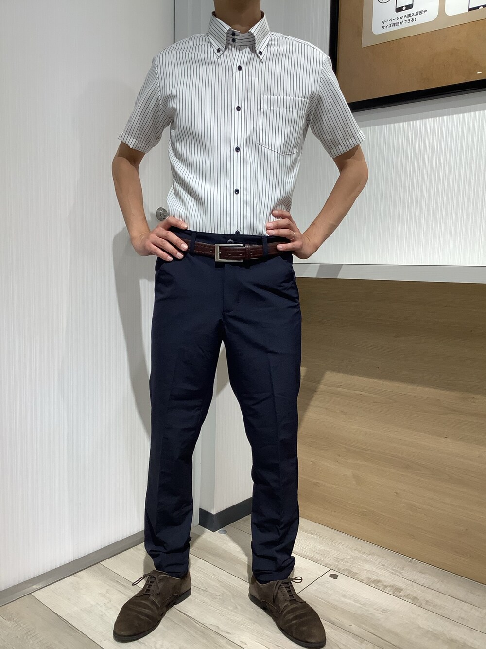 TOKYO SHIRTS OUTLET 福岡マリノアシティ店のビジネスシャツ「超形態安定ノーアイロン ドゥエボットーニ 半袖ビジネスワイシャツ」を使ったコーディネート