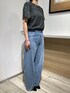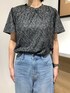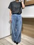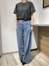 モノトーンのフラワープリントが大人っぽいブラウスに、デニムを合わせた大人カジュアルスタイル。