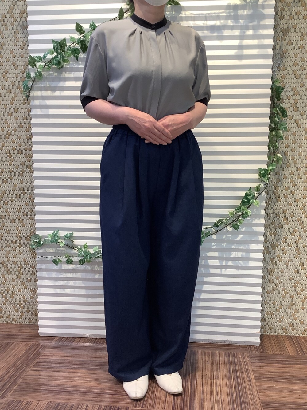グレーとブラックの配色ブラウスで きれいめカジュアルコーデ🩶 ふわっとしたデザインと落ち着いた色味で大人可愛い1枚です😊 さらりとした着心地でシワになりにくく、 ・UVカット ・吸水速乾 ・ストレッチ を兼ね備えた万能ブラウスです✨