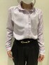 【COFREX】 スタンド シャーリングブラウス 上品なパープルに控えめなフリルで 普段使いからビジネスまでOKです‼️ 素材も柔らかく着心地がよいです☺️