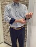 固くならずにカジュアルチックにコーディネート。ブルー系でまとめて爽やかさup⤴️な印象ですね♪