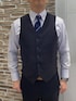 パープル・綿100%のスナップダウンシャツでのコーディネート。ポイントは襟元の『スッキリ』さ。衿が押さえられていて浮きがなくキッチリ感がありますね♪