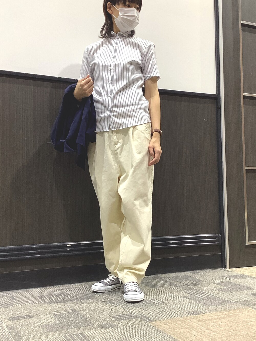 ジャケットと半袖シャツを合わせ気温差がある日も快適に😊 ワイドカラーが涼しげでこなれた印象に。