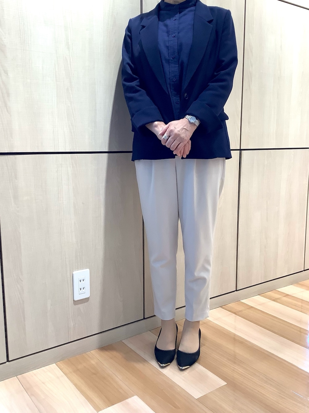品のあるネイビー×ネイビーコーデ シャツは綿100%ガーゼなので通気性がよく動きやすいストレスフリー素材です✨
