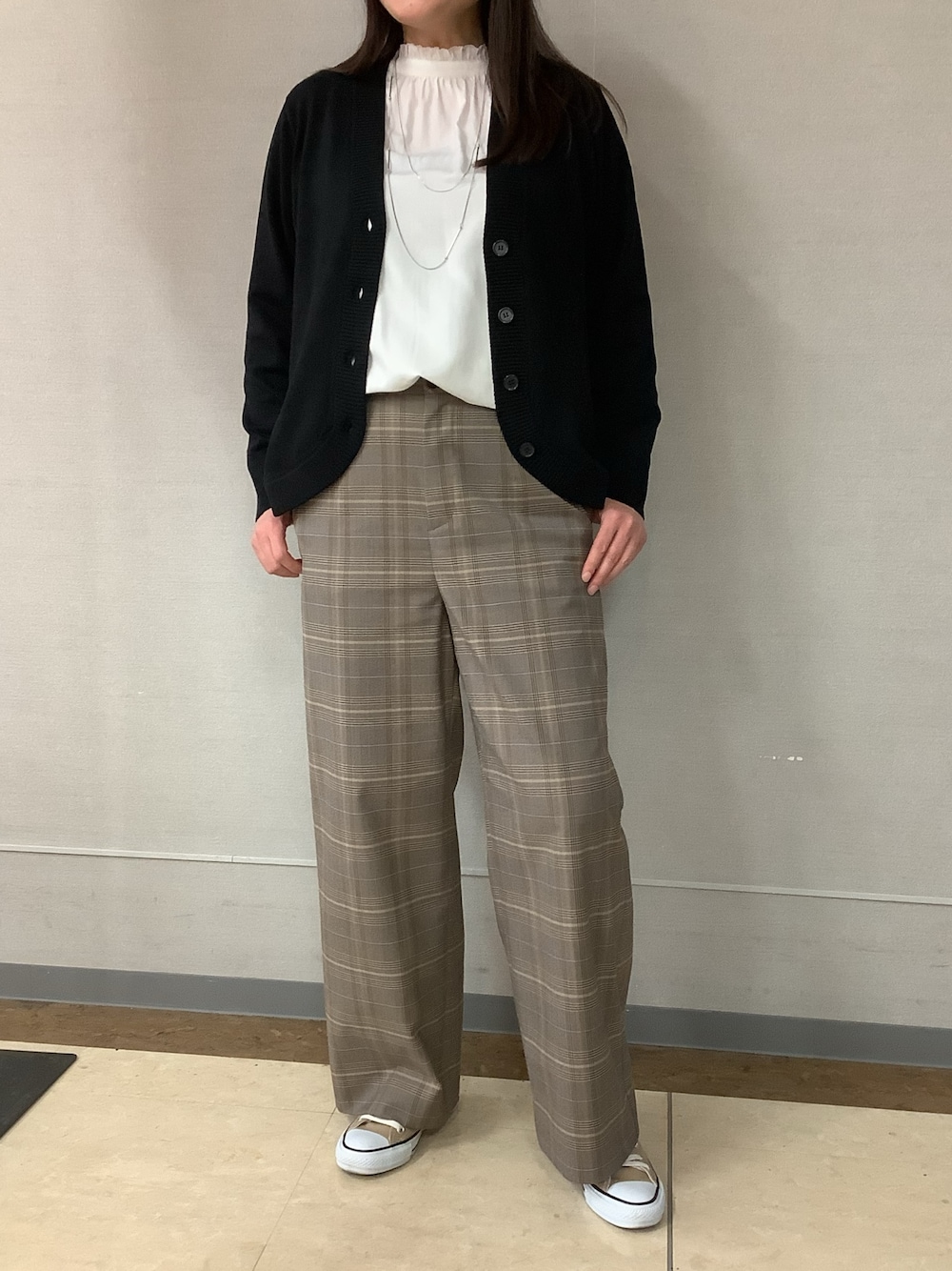 黒の定番カーディガンに白のスタンドブラウスを合わせました♪ お家で洗えてしかも毛玉になりにくい優れもの。 厚手では無いのでジャケットに中に着込むのも◎ 秋から春先まで着ていただけます😊