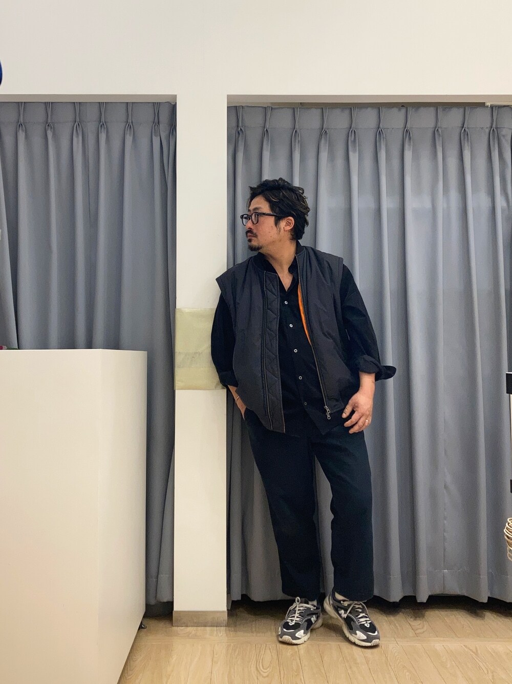 SHIRTS PLAZA 広島府中イオンモール店(SHIRTS PLAZA 広島府中イオンモール)のシャツ/ブラウス「リラックスワイドヨークシャツ<ブラック>」を使ったコーディネート