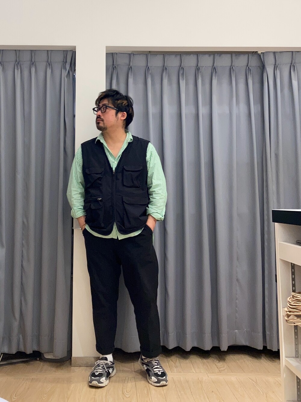 今日はブリックアンドサンズのグリーンシャツを使ったブラックコーデ。キレイめカジュアルな雰囲気で落ち着いた装いに仕上げることができます。グリーンのシャツがさりげないアクセントになり、洗練された印象を与えます。