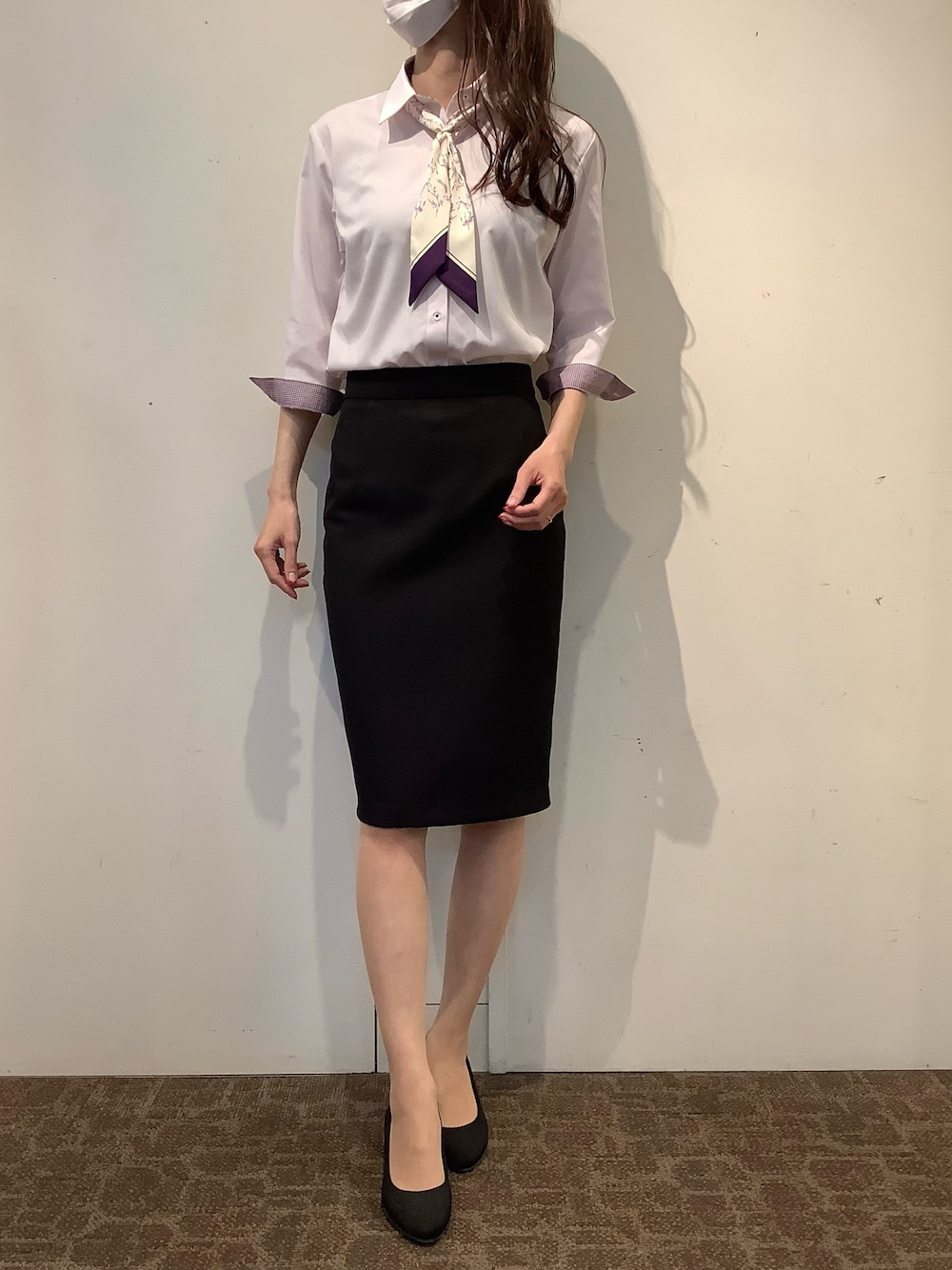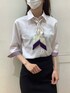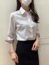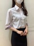 控えめなピンクの色味がお仕事用シャツとしてオススメ。 さりげない織柄があり、合わせやすい一枚です♪