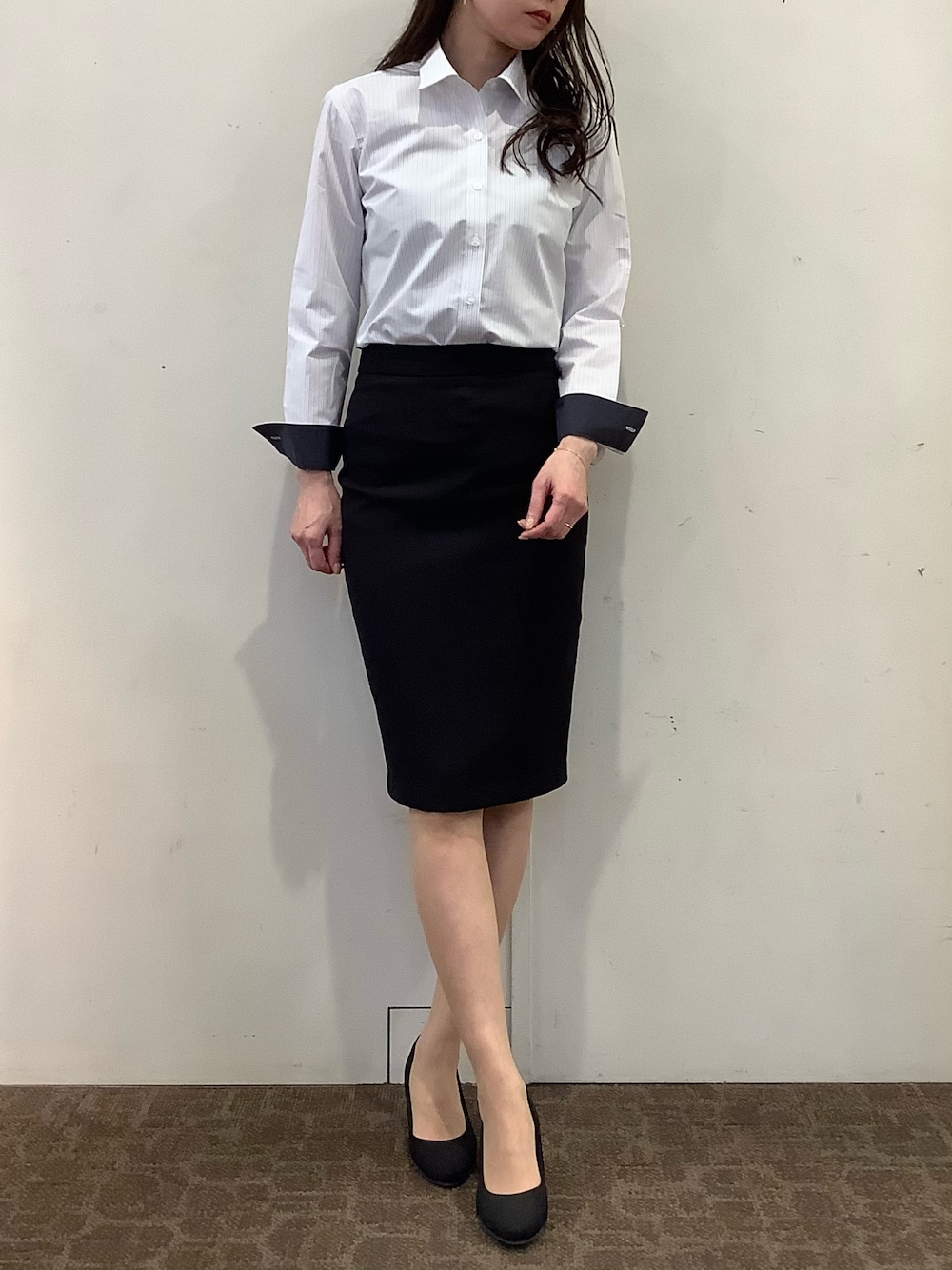 オフィススタイル. 【透け防止 形態安定シャツ】 グレーのストライプシャツ。カフスを折り返した際の別生地がアクセントに。ハリのある生地で、サラッとした着心地です。 インナーの透けを軽減 + UVカット効果に優れているので、上着を着用しない場面でも安心感がありますよ!