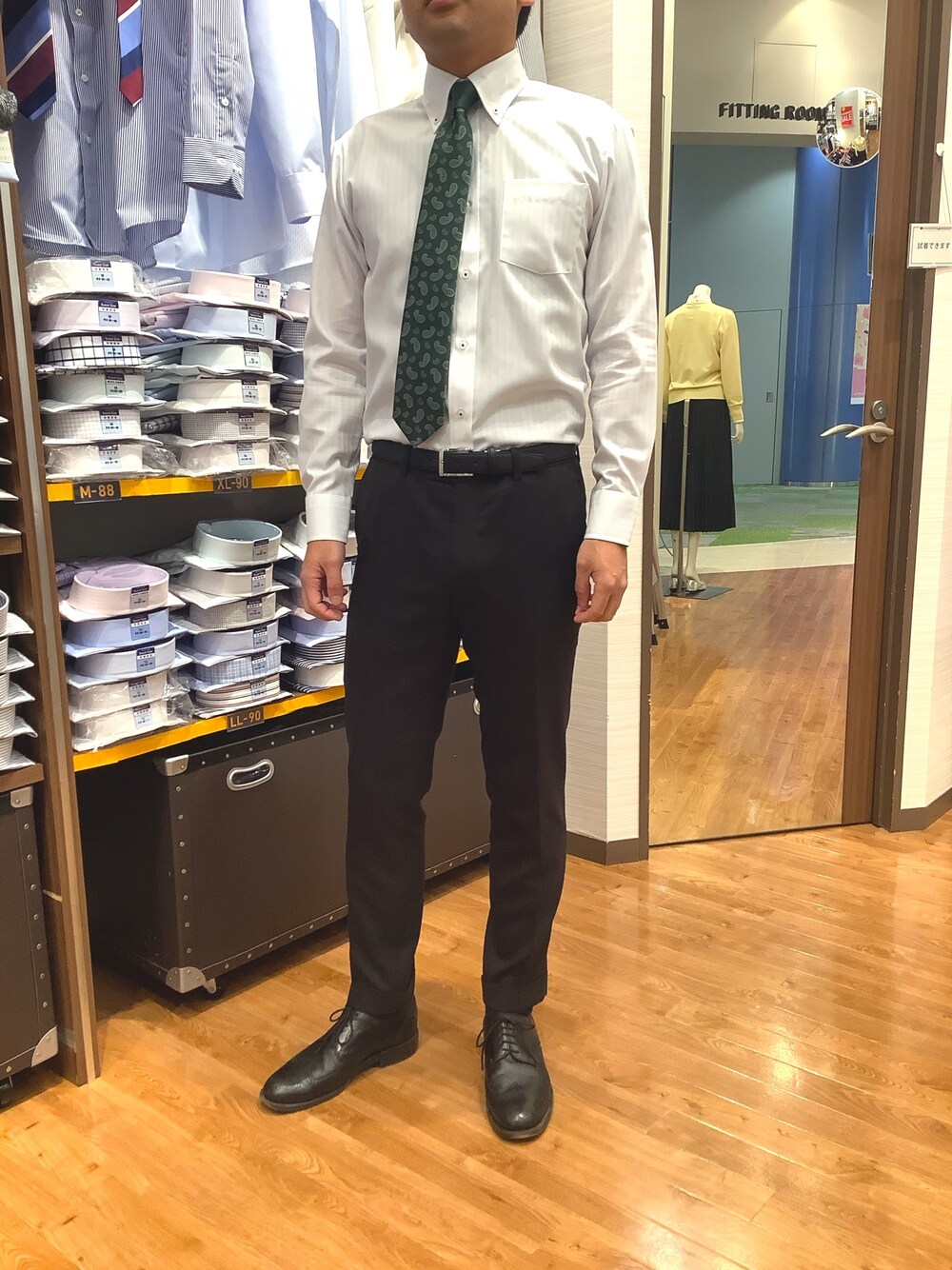 SHIRTS PLAZA 堺北花田イオンモール店(SHIRTS PLAZA 堺北花田イオンモール)のビジネスシャツ「超形態安定ノーアイロン ボタンダウン 長袖ビジネスワイシャツ」を使ったコーディネート
