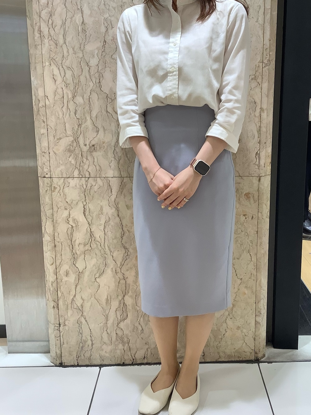 タイトスカートと合わせ、綺麗目に仕上げました。 ワイドパンツなどと合わせてカジュアルっぽく着るのもオススメです♪