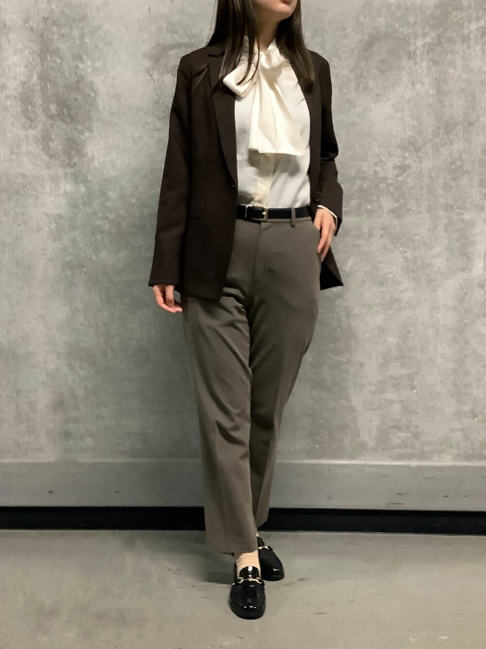 SHIRTS PLAZA 天神地下街店(SHIRTS PLAZA 天神地下街)のシャツ/ブラウス「クラッシュスエード ボウタイブラウス 長袖」を使ったコーディネート