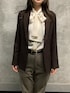 ベロア風ボウタイブラウスを新作のブラウンジャケットと合わせてハンサムコーデを組んでみました🕺 ボウタイは取り外しも可能なので気分に合わせて2wayで楽しめます✨ シンプルにスタンドカラーとしても着回ししやすいデザインなのでボトムを変えればオケージョンアイテムとしても大活躍♪ 見た目はベロア風ですがとろんとした薄手の生地感なので秋から長く使っていただけます🥰